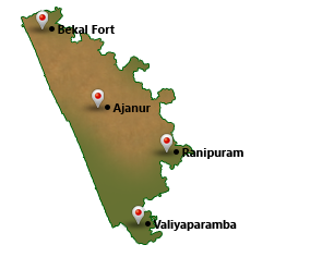 Kasaragod is one of the most beautiful districts in Kerala state endowed with 9 rivers (out of a total of the 44 rivers that flow in Kerala), hills, beaches, backwaters, as well as temples, churches, mosques and forts. Some of the main places of visit for a tourist in Kasarakod district are Bekal Fort, Ananthapura Lake Temple, Ranipuram, Kottancheri Hills, Valiyaparamba Backwaters, Malom wild life sanctuary,addor wild life sanctuary, parappa wild life sanctuary, Kareem's forest park which is the first private sanctuary in India and so on.